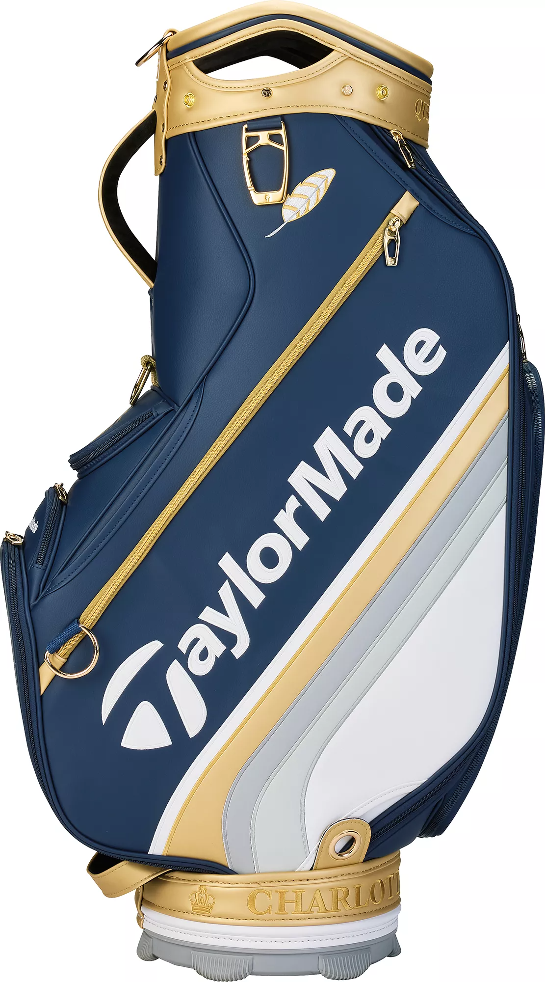 From stock car racing to professional basketball, and storied southern tradition, this year’s staff bag commemorates everything rich and iconic about the host venue and Charlotte, North Carolina. Quail feathers, crowns and TaylorMade logos are found throughout the exterior. The interior linings remind us of the checkered flag that gets waved at the conclusion of a race.